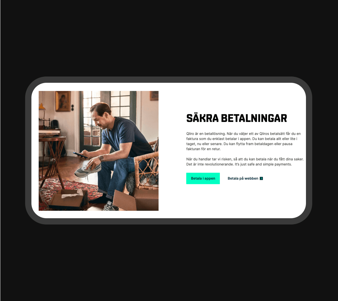 We worked closely with Qliro, in fast iterations that kept things moving. Designers, developers, and Qliro’s own teams built, tested, and improved step by step. The design team created wireframes, prototypes, and visual concepts based on insights from users and stakeholders. Developers made sure everything held up in practice, so the design didn’t just look good but actually worked day to day.